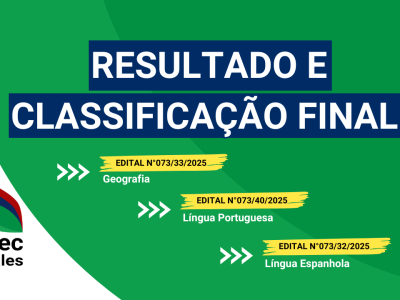 A Etec Dr. José Luiz Viana Coutinho comunica publicação no Diário Oficial referente à Fase de Resultado da Prova de Métodos Pedagógicos e Classificação Final: EDITAL Nº 073/33/2025 – GEOGRAFIA (BNC/ BNCC/ ETIM / MTEC […]