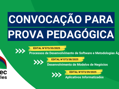 EDITAL Nº 073/37/2025 – PROGRAMAÇÃO FRONT-END ( DESENVOLVIMENTO DE SISTEMAS INTEGRADO AO ENSINO MÉDIO (MTEC – PROGRAMA NOVOTEC INTEGRADO) – PARCERIA SEE – PEI 9 HORAS) EDITAL Nº 073/35/2025 – PROCESSOS DE DESENVOLVIMENTO DE SOFTWARE E METODOLOGIAS ÁGEIS ( DESENVOLVIMENTO […]