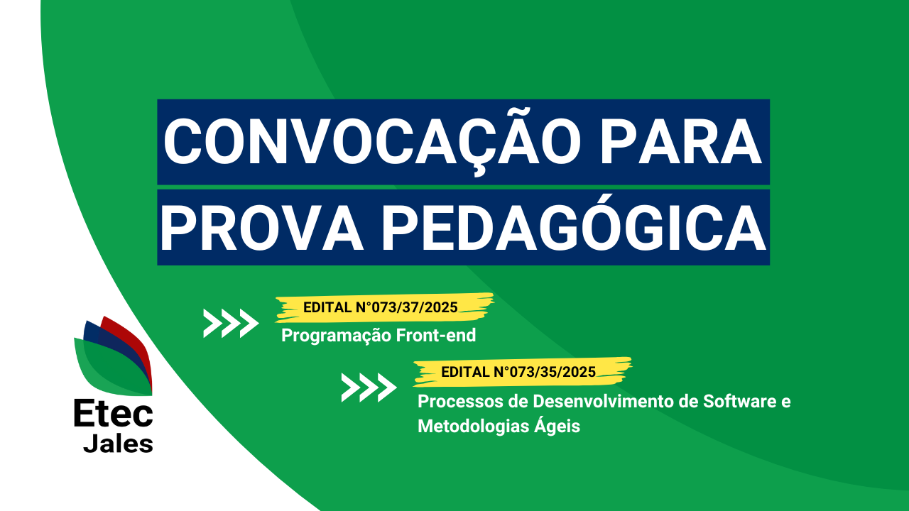 EDITAL Nº 073/37/2025 – PROGRAMAÇÃO FRONT-END ( DESENVOLVIMENTO DE SISTEMAS INTEGRADO AO ENSINO MÉDIO (MTEC – PROGRAMA NOVOTEC INTEGRADO) – PARCERIA SEE – PEI 9 HORAS) EDITAL Nº 073/35/2025 – PROCESSOS DE DESENVOLVIMENTO DE SOFTWARE E METODOLOGIAS ÁGEIS ( DESENVOLVIMENTO […]