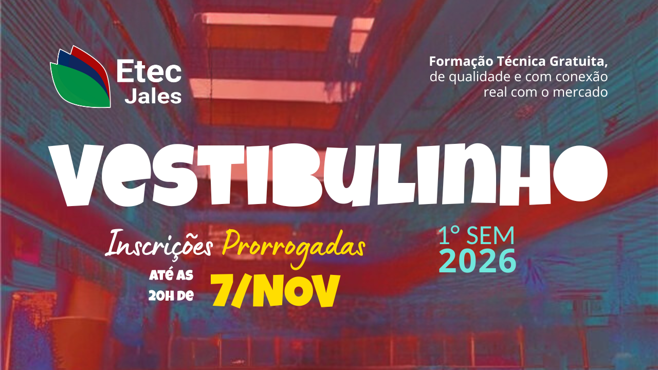 A Etec Dr. José Luiz Viana Coutinho comunica que as inscrições para o Vestibulinho para o 1º Semestre de 2026 estarão abertas do dia 10/09 até às 20h do dia 07/11/2025, exclusivamente pelo site vestibulinho.etec.sp.gov.br. […]